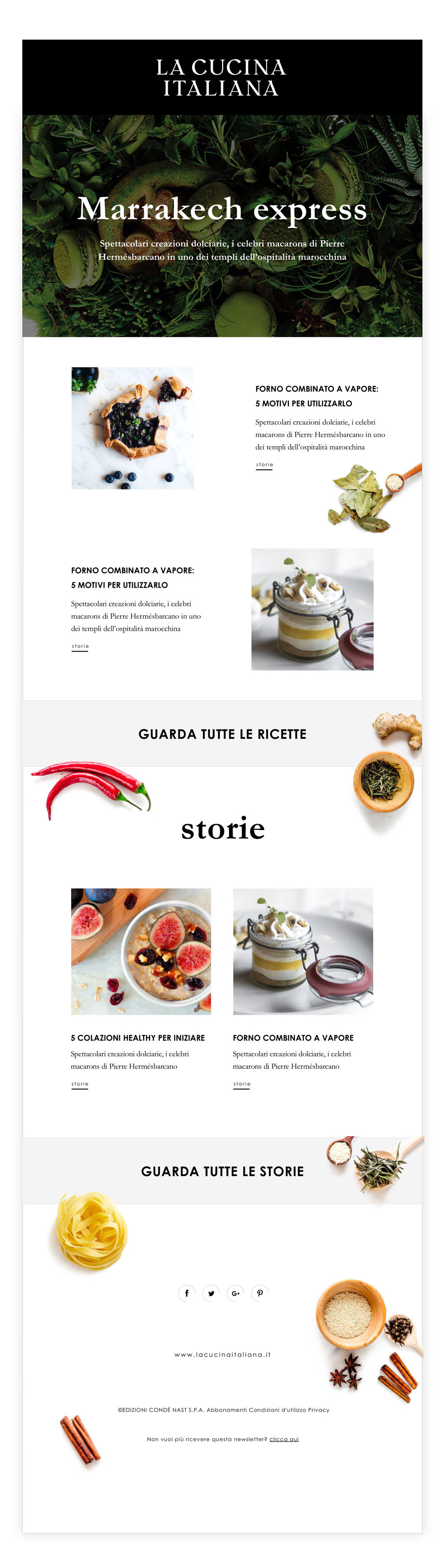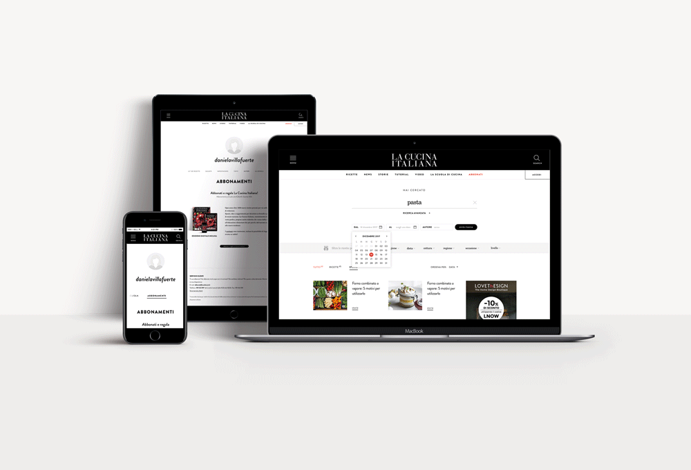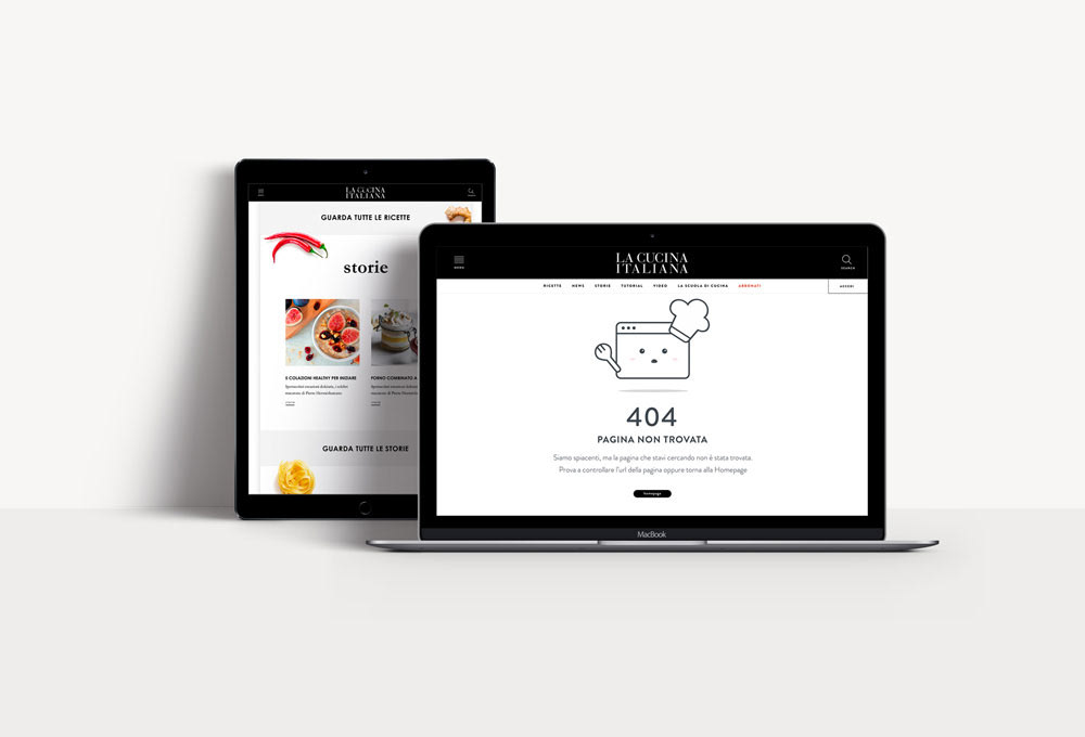 User Interface design for different products inside Condé Nast Italia, such as La Cucina Italiana. Website and app design, for Menu, subscriptions, search and search results, 404 page, newsletters.